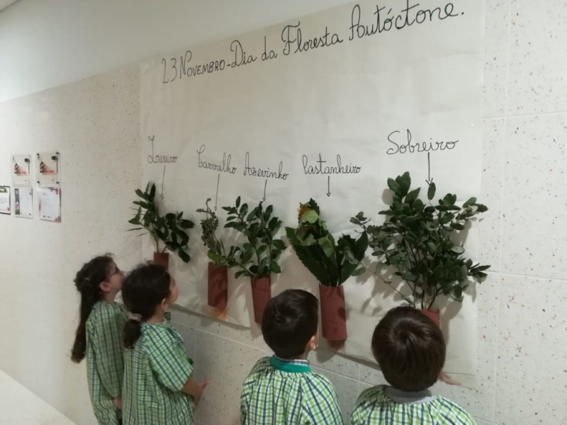As crianças do Jardim de Infância de Bairro, estiveram a conhecer melhor as espécies autóctones, a sua importância e quais as mais comuns na região. A ação realizou-se a 23 de novembro, dia da Floresta Autóctone. Os alunos tiveram a oportunidade de contatar, utilizando os diferentes sentidos, para melhor conhecer estas árvores, através de canos das diferentes espécies. Muitas crianças identificaram as árvores e indicaram situações em que viram as árvores, cujos ramos estavam a observar, nos passeios realizados em família. Assim, após conhecerem e sentirem um pouco mais as variedades com maior incidência nesta região, fizeram um cartaz, representando cada uma das espécies. Utilizaram cones de cartão que pintaram com tintas, para representar os troncos e folhas verdadeiras para a copa. Assim, ficamos com um cartaz com relevo e cheiro. As espécies presentes no cartaz e que os alunos identificaram, foram o loureiro, o carvalho, o azevinho, o castanheiro e o sobreiro. De pequenino se aprende a respeitar a floresta e a conhecer o seu valor.