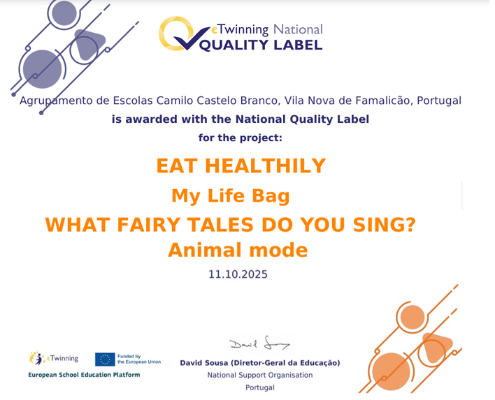 O AECCB foi, mais uma vez, distinguido com o Selo Nacional de Qualidade (SNQ) eTwinning, um reconhecimento da Direção-Geral da Educação. Os projetos "My Life Bag"; "Eat Healthily"; "Wat Fairy Tales do You Sing"; e "Animal Mode" obtiveram esta distinção que atesta a excelência na cooperação europeia e na utilização pedagógica das tecnologias digitais, demonstrando a qualidade e a inovação do trabalho desenvolvido pelos professores e alunos do agrupamento.