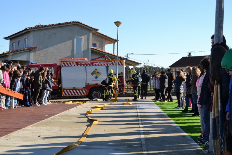 A manhã do décimo dia de janeiro, deste ano, foi diferente. Para nos esclarecer como atuar em caso de incêndio, houve um simulacro. O “palco” escolhido para a ação foi a sala 3, do 1ºciclo, desta escola de Gondifelos. Nós, alunos do 3G, selecionamos pouco antes, os atores principais, entre os muitos que ruidosamente se ofereciam. Houve um foco de incêndio num canto da sala e começou a aparecer fumo, muito fumo. O sinal alertou os responsáveis que tentaram resolver a situação com os extintores. Em vão!... Não conseguiram! Então, após três toques do alarme saímos ordeiramente, embora muito preocupados com os colegas acidentados que ficavam aos cuidados de adultos responsáveis que os tentavam socorrer. Fomos para o “ponto de encontro”. Aqui, no campo de futebol, o diretor Jones ficou a saber que faltavam quatro alunos desta turma. Passados poucos minutos já cá estavam os Bombeiros Famalicenses. Entraram rapidamente na sala de aula, com todos os procedimentos de segurança, depois de receberem informações dos superiores da escola. Socorreram com sucesso todos os nossos colegas! Que alívio! Salvos!...Ver todos aqueles materiais, veículos, empenho dos profissionais bem fardados e equipados para os tirarem com vida… Era mesmo um simulacro! Temos de aprender para saber como fazer nestas situações cada vez mais frequentes na vida real devido às alterações climáticas e irresponsabilidade de muitas pessoas. Um pequeno gesto, uma resolução certa… pode salvar vidas. Queremos agradecer a todos os bombeiros que ajudaram a “salvar” estes alunos.