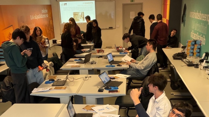A atividade promoveu uma reflexão crítica sobre o uso responsável do digital e os desafios da inteligência artificial. Para além disso, os alunos realizaram uma atividade prática de programação, colocando em funcionamento um carro robô, o que contribuiu para despertar o interesse pela robótica e pela automação industrial.