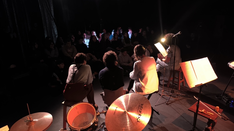 Dentro da sala, o ambiente era escuro e acolhedor. O público estava sentado muito perto dos intérpretes. Essa proximidade criava uma sensação rara de intimidade. Ali, tudo se ouvia melhor. Os sons. As vozes. Até os silêncios.