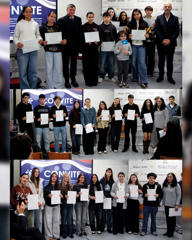 Esta cerimónia contou com a presença do Dr. Pascal Sanchez, adido da Cooperação Educativa do Instituto Francês de Portugal, da Dra. Alexandra Gonçalves, diretora da Aliança Francesa de Guimarães/ Braga, do Dr. Sérgio Guimarães, presidente do Conselho Geral e do Dr. José Moreira, diretor do Agrupamento de Escolas de Padre Benjamim Salgado. Foi com enorme satisfação que os 38 candidatos receberam os seus diplomas de nível A1, A2 e B1, sendo de enaltecer a prestação de todos os alunos.