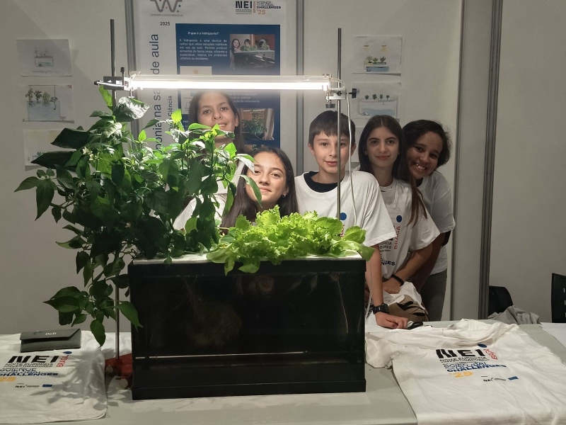 O Agrupamento de Escolas Terras do Ave marcou presença na Noite Europeia dos Investigadores, no Altice Fórum Braga, onde deu a conhecer o projeto inovador “Hidroponia em sala de aula”. Desenvolvido pelos nossos alunos, o projeto explorou as potencialidades da cultura em água, uma alternativa sustentável à agricultura tradicional. No stand apresentado, os estudantes realizaram demonstrações práticas do sistema de cultivo, explicando com entusiasmo todo o processo: desde a montagem da estrutura, aos diferentes tipos de plantas utilizadas e aos benefícios ambientais da hidroponia. O espaço atraiu dezenas de visitantes, entre os quais o próprio Ministro da Educação, que se mostrou curioso e atento às explicações dos jovens investigadores. A participação neste evento foi muito mais do que uma simples mostra científica. Representou um momento de valorização do trabalho desenvolvido em contexto escolar, evidenciando como a ciência pode e deve estar ao serviço da comunidade educativa. Projetos como este são fundamentais para estimular a curiosidade, promover a literacia científica e fomentar uma consciência ambiental responsável, preparando os alunos para os desafios do futuro. Ao levar a ciência para fora da sala de aula, o Agrupamento demonstra que a escola é um espaço vivo, capaz de unir saber, inovação e cidadania ativa, contribuindo para a formação de cidadãos mais conscientes, críticos e comprometidos com a construção de um mundo mais sustentável.