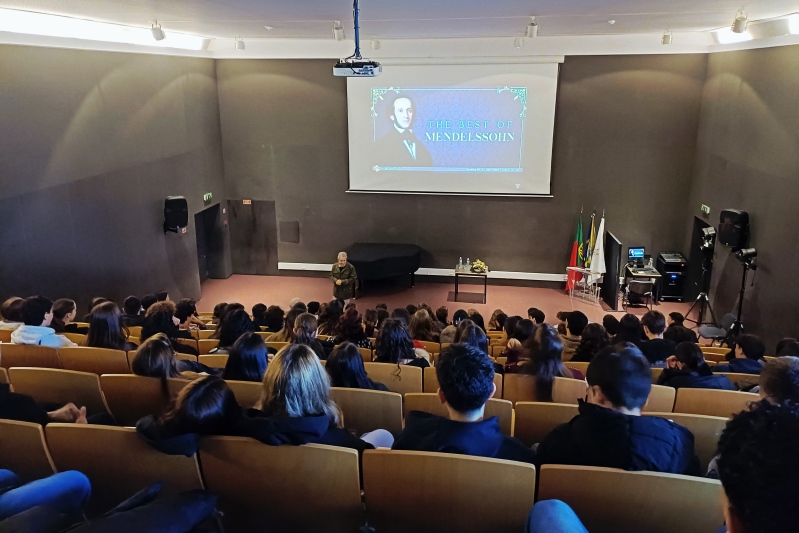 Sessão foi orientada pelo Prof. Doutor Luís Alberto, no auditório da escola secundária.