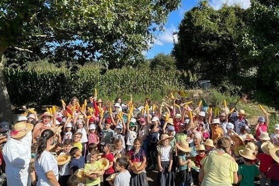 Os alunos da Escola Básica e Jardim de Infancia de Sapugal saíram para o campo, e na época das colheiras participaram numa desfolhada.