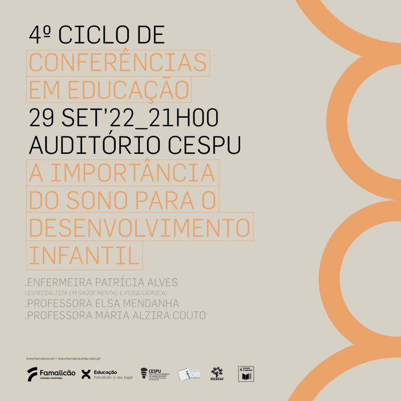 Ler maisÉ já no próximo dia 29 de setembro, pelas 21H00, que vai decorrer o 4.º ciclo de conferências em Educação, desta vez dedicado ao tema “A importância do sono para o desenvolvimento infantil” com a Enfermeira Patrícia Alves, Professora Elsa Mendanha e Professora Maria Alzira Couto.