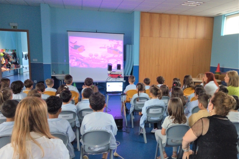 A equipa da Biblioteca Escolar do agrupamento de Escolas de Gondifelos, com os professores Jorge Mariz e Rosa Dias, deslocou-se aos Jardins de Infância de Gondifelos e de Outiz para apresentar o filme de curta-metragem animado “Silly Synphonies - Birds in the Spring”, da Disney