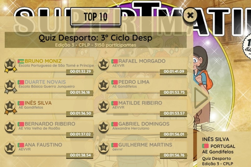 Ler maisO Agrupamento de Escolas de Gondifelos participou pela 2ª vez na Final do Campeonato do Supertmatik Quiz Desporto, com Inês Silva a terminar no 3º lugar nacional.
