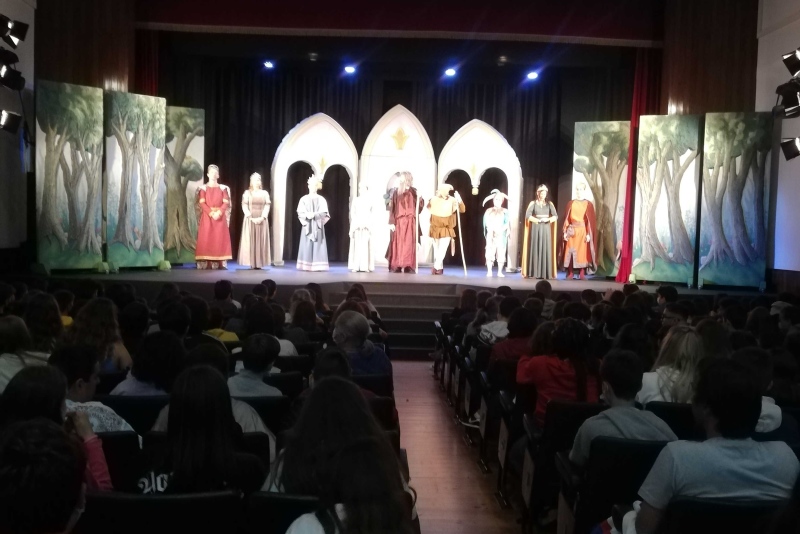 Ler maisQuatro turmas do sétimo ano (7º1,2,3,4) assistiram a uma das peças de teatro da Companhia de teatro “O Sonho”. A peça a que assistiram foi “Leandro, Rei da Helíria”.