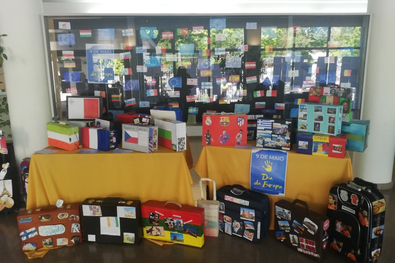 Ao longo do mês de maio, decorreu no átrio da escola uma exposição de malas representativas dos países da União Europeia, no âmbito das comemorações do Dia da Europa, celebrado no dia 9 de maio.