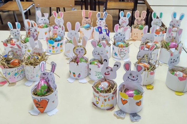 Na última semana de aulas do 2º período, os alunos da Escola Básica da Carreira construíram coelhos da Páscoa com recurso a materiais de desperdício, na AEC de Expressão Plástica e realizaram a caça aos ovos na AEC de jogos tradicionais.