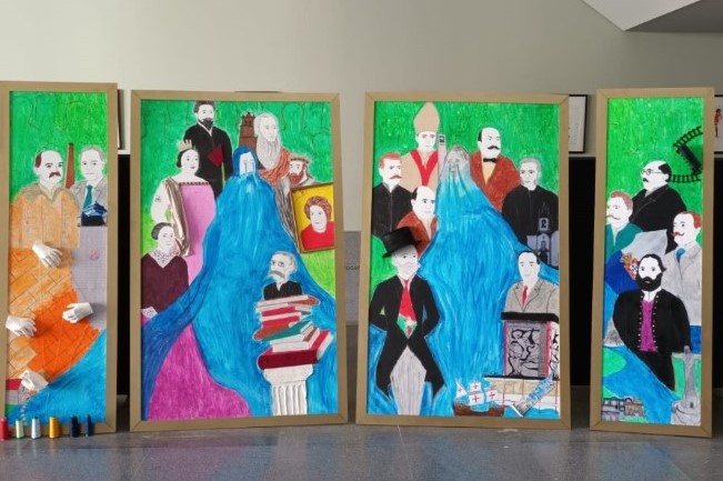 Alunos da Escola Básica Luís de Camões, inspirados nos Painéis de São Vicente, apresentam à comunidade educativa do Agrupamento de Escolas Camilo Castelo Branco, os Painéis da Bacia do Ave – Ilustres Famalicenses.