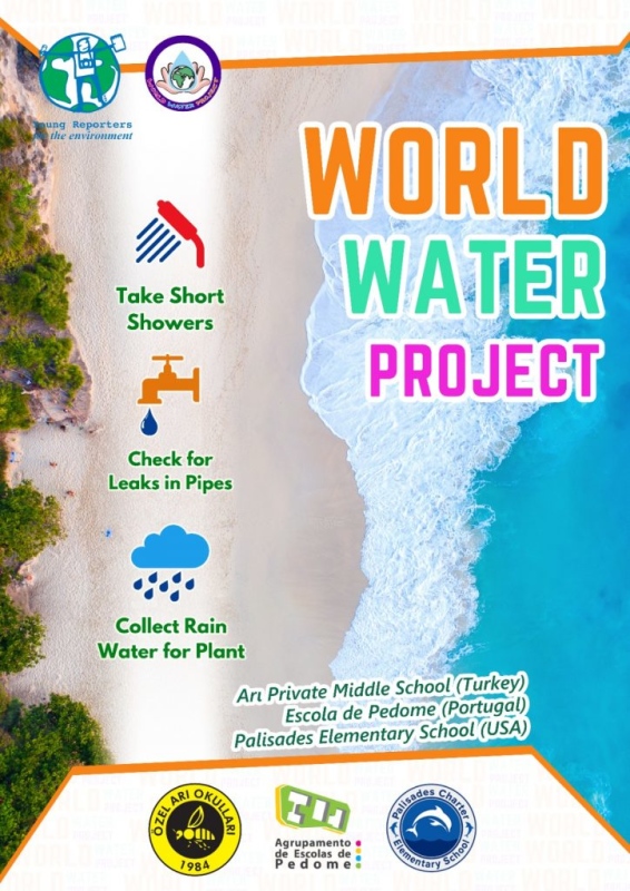 Este é o cartaz ilustrado, resultado do trabalho colaborativo, “World Water Project”, no âmbito dos Jovens Repórteres do Ambiente, entre a EB de Pedome e os parceiros da Turquia e E.U.A..