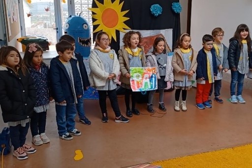 Ler maisNo âmbito da Semana da Leitura e da articulação com aquela que será a sua futura escola, o grupo dos 5 anos do Jardim de Infância Vale S.Martinho deslocou-se à escola do 1º ciclo para declamar, com emoção, um poema alusivo ao Dia do Pai, tendo escutado, atentamente, outros poemas, lengalengas e jogos de rimas apresentados pelos colegas do 1º ciclo.