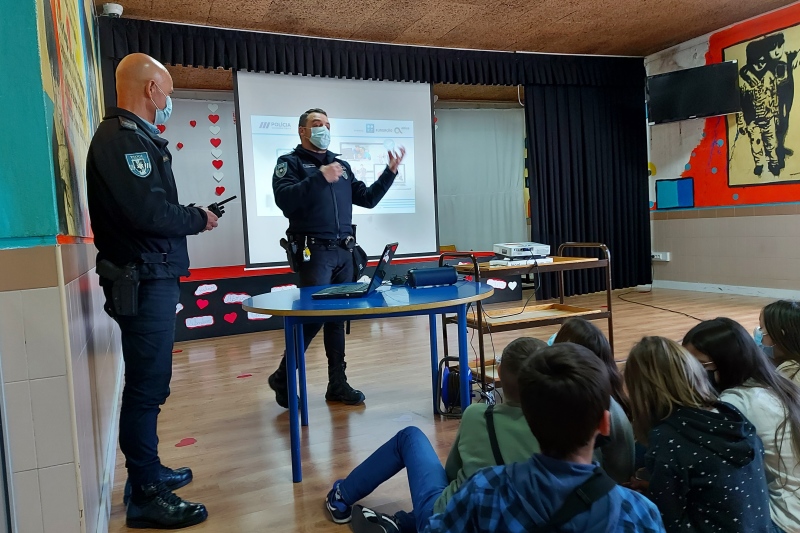 Escola Dr. Nuno Simões recebeu a presença de agentes da Policia de Segurança Pública / Escola Segura, para dinamização de uma sessão de sensibilização junto das turmas do 6º ano, sobre a utilização segura da Internet.