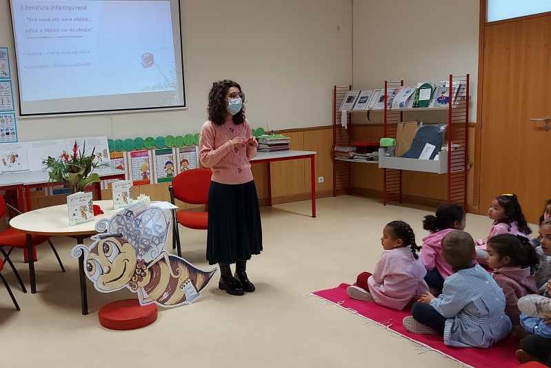 Os alunos do JI/3°e 4° anos assistiram à apresentação do livro "Era uma vez uma abelha" das autora Maria Andrade Paiva.