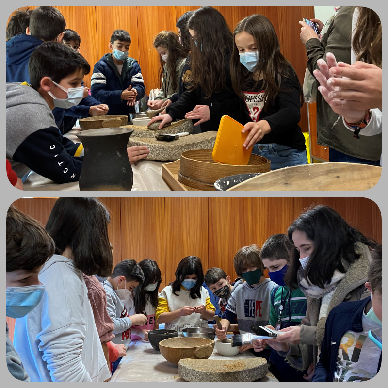 Os alunos do 5ºano da Escola D. Maria II, no âmbito do projeto de Cidadania, participaram numa oficina de fabrico do pão castrejo, atividade dinamizada pelo Gabinete de Arqueologia do município.