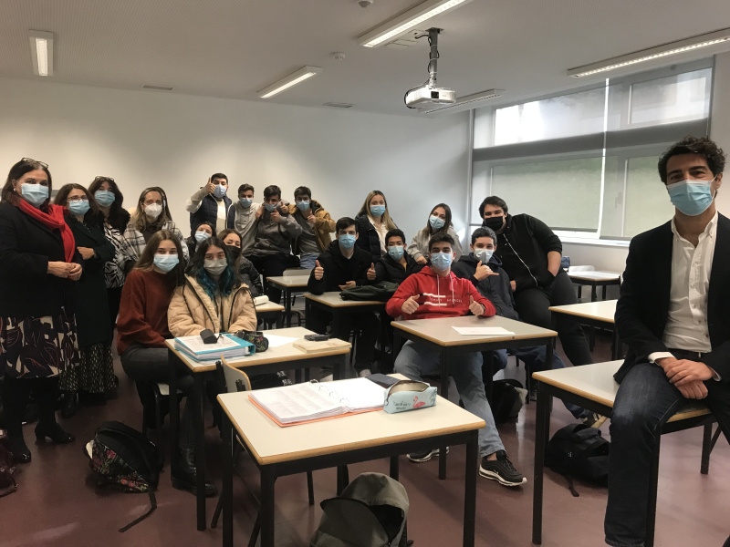 Os alunos da turma do 2º ano do Curso Profissional de Técnico de Contabilidade e da turma 7 do 12º ano assistiram a uma sessão dinamizada por André Vieira de Castro que, a convite do Gabinete do Emprego e Empreendedorismo, se propôs a dissecar “uma empresa numa hora”