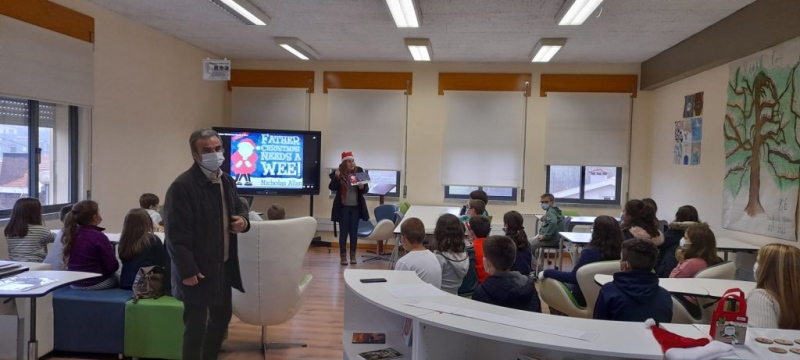As obras Histórias de Natal de Fabrice Lelarge (história A Dieta do Pai Natal) e Father Christmas needs a wee de Nicholas Allan foram dinamizadas na hora do conto do dia 7 de dezembro para as turmas do 1.º ciclo da escola sede, pelas professoras Sandra Fontes e Clara Verónico. A última história foi contada em inglês.