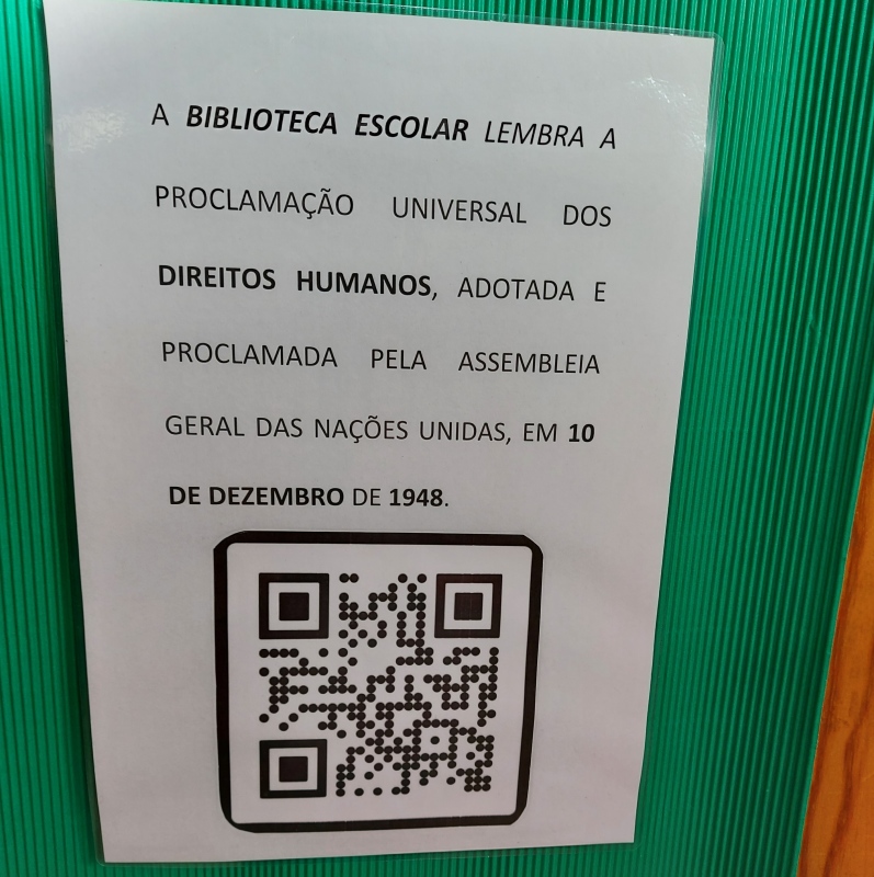 Ler maisA Biblioteca da Escola Dr. Nuno Simões lembrou, a 10 de dezembro, os 73 anos da proclamação Universal dos Direitos Humanos, colocando uma mensagem ilustrada, em QR Code, alusiva ao tema, nas portas das salas de aula.