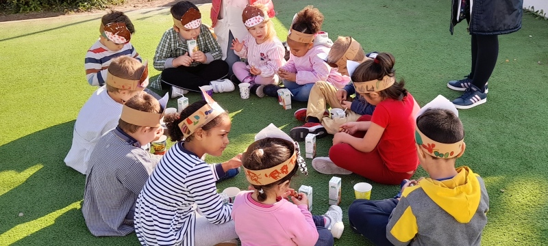 Martinho na escola. Não faltaram as castanhas assadas, o sumo oferecido