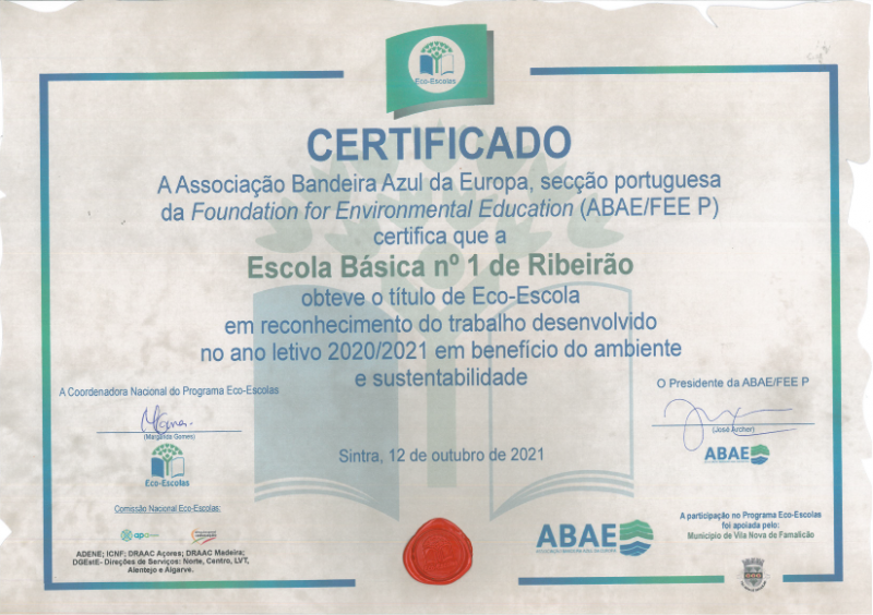 Ler maisNo ano letivo 2020-2021, a Escola Básica nº 1 de Ribeirão participou no Programa Eco-Escolas promovida pela Associação Bandeira Azul da Europa- ABAE- cujo objetivo é a sustentabilidade do meio ambiente.