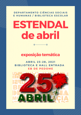 Estendal de abril – exposição temática (articulação Departamento CSH e BE) entre 23 e 28 de abril, na EB de Pedome.