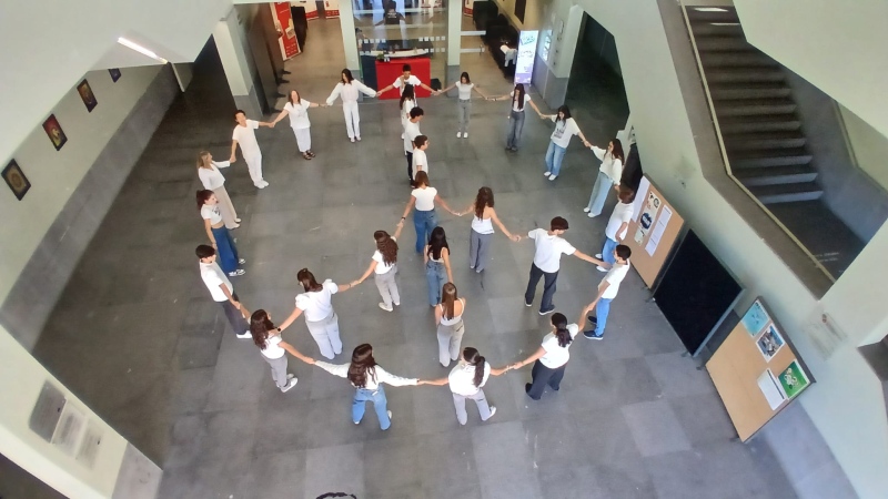 Inserido na Semana da Paz, o Dia Europeu das Línguas foi celebrado com criatividade e cooperação: colagens, cartazes digitais e vídeos com um apelo à paz e à consciência global. Os trabalhos foram exibidos no átrio da escola sede, no video wall, atraindo a comunidade educativa. Várias turmas juntaram-se, deram as mãos, formando o símbolo da Paz e cantaram canções de esperança.