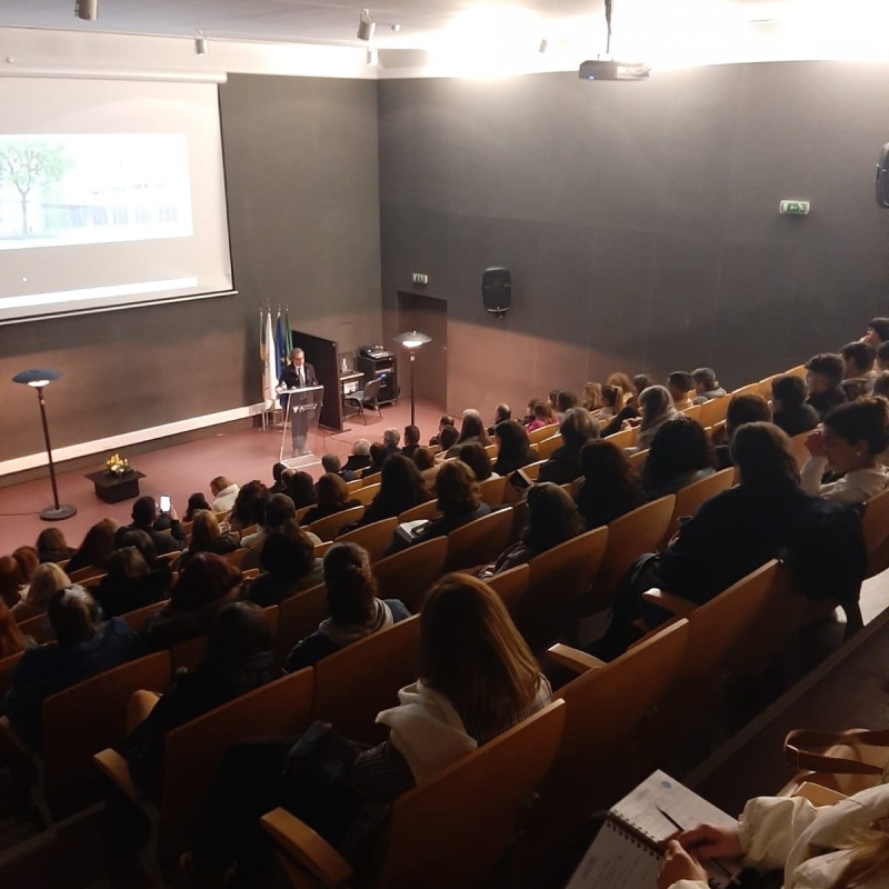 A oradora envolveu a sua plateia, composta por alunos dos 2º e 3º ciclos e professores. Os alunos foram desafiados a refletir sobre diferentes aspetos que podem contribuir para a construção de uma escola mais inclusiva e democrática, utilizando valores como a liberdade e a participação