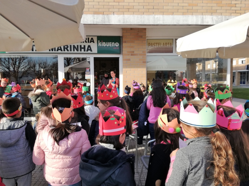 Na última terça-feira (08 de janeiro), os alunos, professoras e assistentes operacionais do 1ºciclo do AEG saíram à rua para cantar os reis. Como verdadeiros reiseiros fizemos a preparação: decoramos lindas e preciosas coroas e ensaiamos quadras alusivas acompanhadas por instrumentos musicais, típicos dos nossos antepassados. Foi ao som dos reco-recos, triângulos e pandeiretas que percorremos algumas ruas próximas da escola. Encantamos e alegramos os habitantes que nos abriram as portas de suas casas ou do seu local de trabalho. Muitos ofereceram uma saborosa guloseima, outros quiseram contribuir com a oferta de dinheiro que introduziam em pequenos e coloridos saquinhos de pano. Com esta atividade continuamos a tradição secular que celebra a chegada dos três Reis Magos (Gaspar, Baltazar e Melchior) à simples cabana do Menino Jesus. Agradecemos a simpatia de todos os que nos receberam e o contributo que nos ajudará a concretizar a nossa cultural visita de estudo. Foi uma animada tarde com sol de inverno! Bom ano para todos.